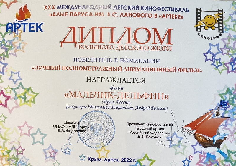 Мультфильм Мальчик-дельфин стал «Лучшим полнометражными анимационным фильмом» фестиваля «Алые паруса»